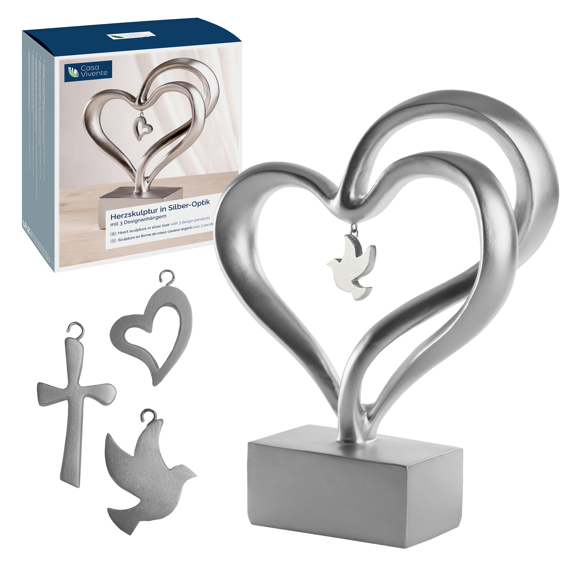Wem immer Du diese Dekofigur zum Geschenk machst, ihm oder ihr wird beim Anblick dieser Silber-Skulptur das Herz aufgehen.