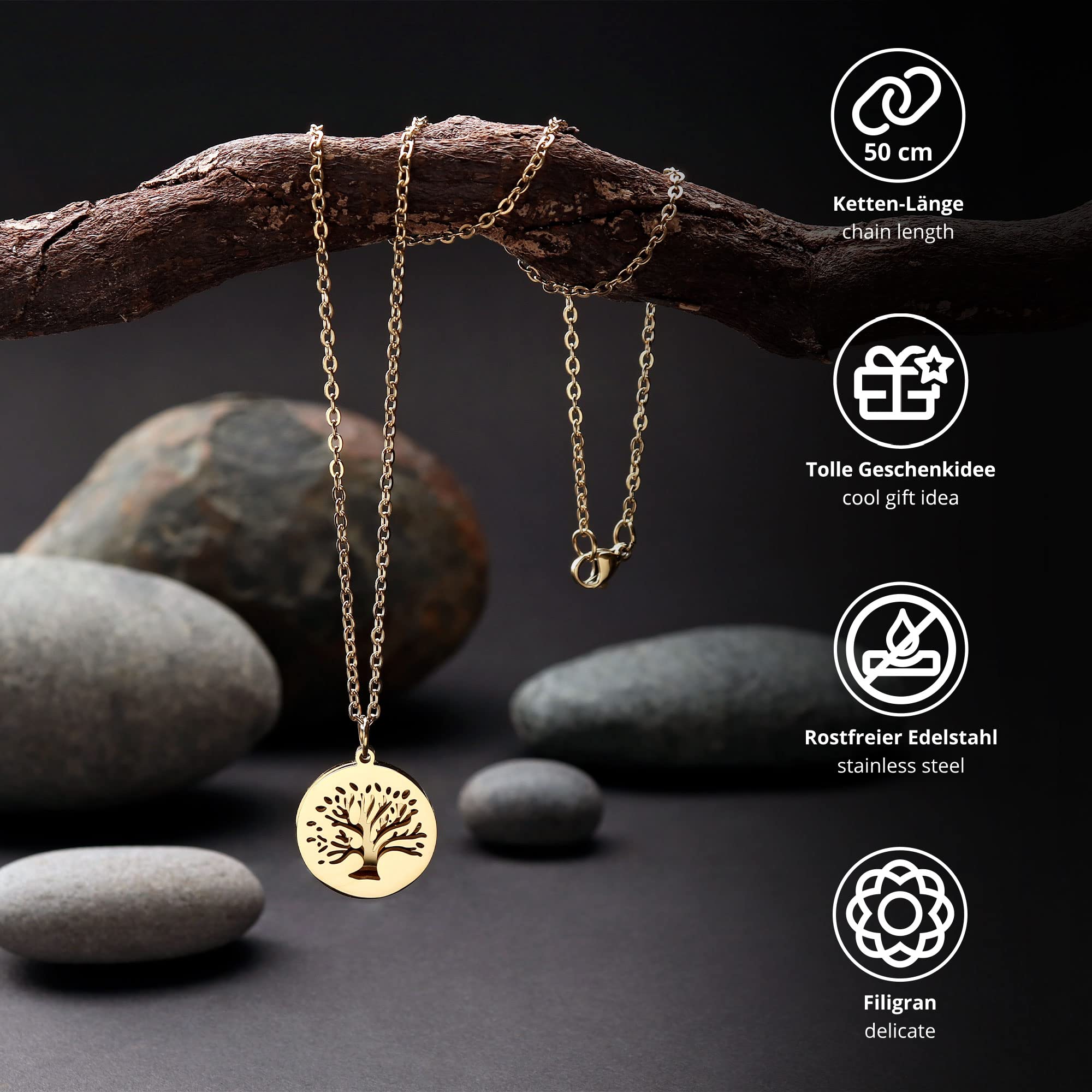 Die Lebensbaum-Kette ist ein tolles Geschenk zu feierlichen Anlässen wie Geburtstag, Weihnachten oder einem anderen Jubiläum für Deine Herzensmenschen. Überrasche Freunde oder Familienmitglieder mit der wunderschönen Halskette in der stilvollen Geschenkbox. Zu jeder Festivität wird die außergewöhnliche Goldkette als Geschenkidee für Begeisterung sorgen und jedes noch so umfangreiche Schmucksortiment um ein traumhaftes Highlight bereichern.