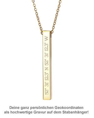 Mit individueller Gravur Deiner Wunsch-Koordinaten auf dem Stabanhänger!