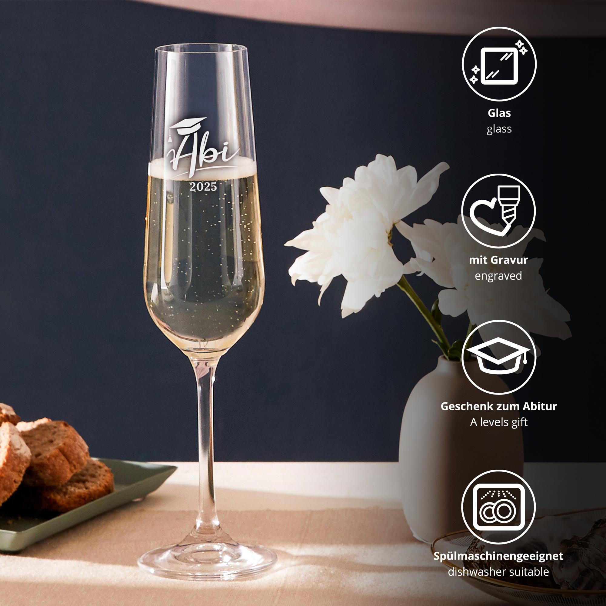 • Besonderes Champagnerglas zum Anstoßen auf die bestandenen Prüfungen