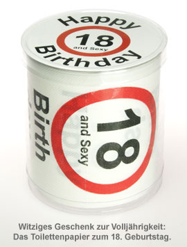 Langweilige Geschenkgutscheine oder Geld in Umschlägen zum Geburtstag zu bekommen mag doch wirklich keiner. Oder würde Dich so ein Geschenk aus den Socken hauen? Und erst recht zur Volljährigkeit erwartet man von seinen Lieben vielleicht etwas, das auf den besonderen Ehrentag zugeschnitten ist und ihn zugleich nicht ganz so ernst nimmt. Mit dem Toilettenpapier zum 18. Geburtstag hast Du das magische Alter direkt auf dem Papier stehen.