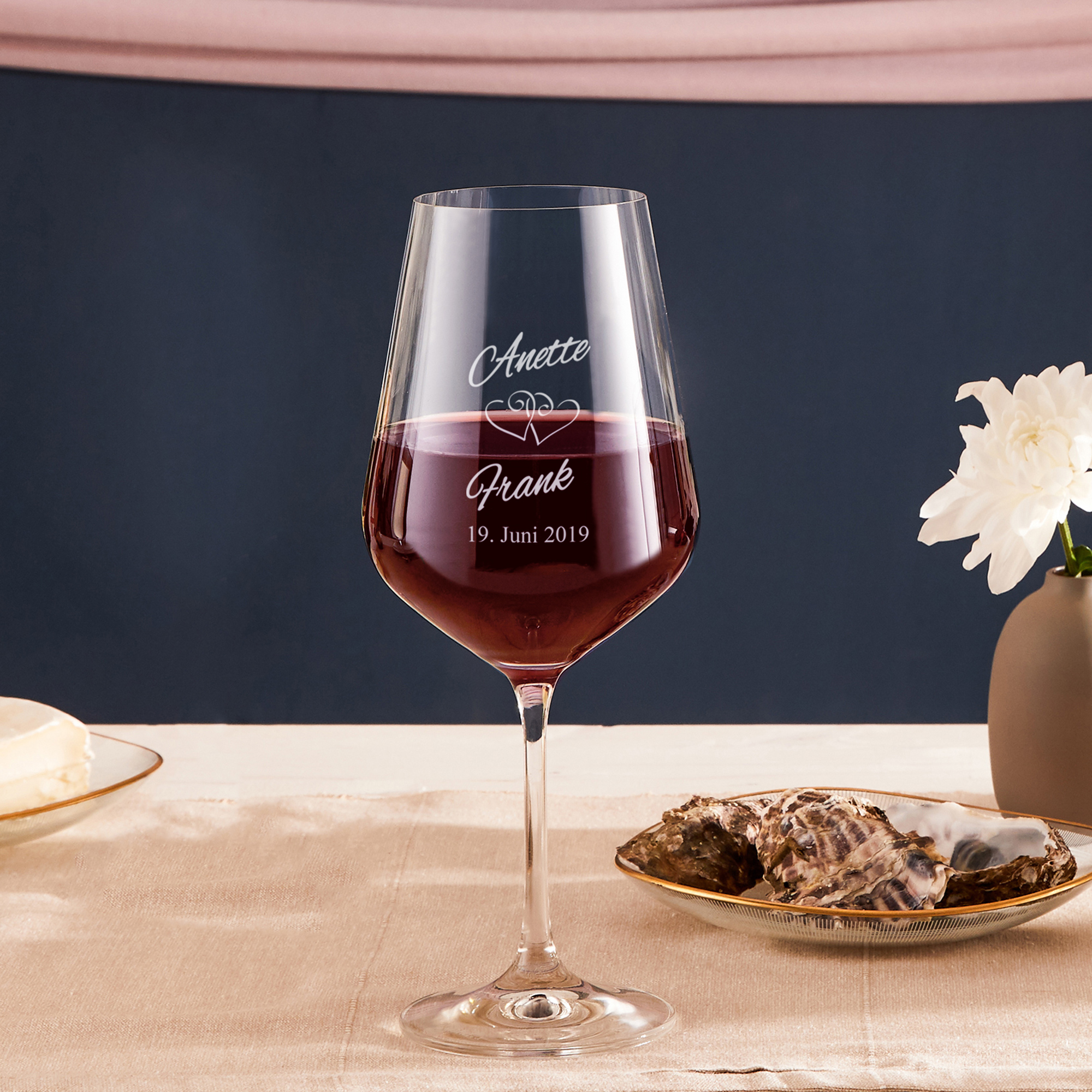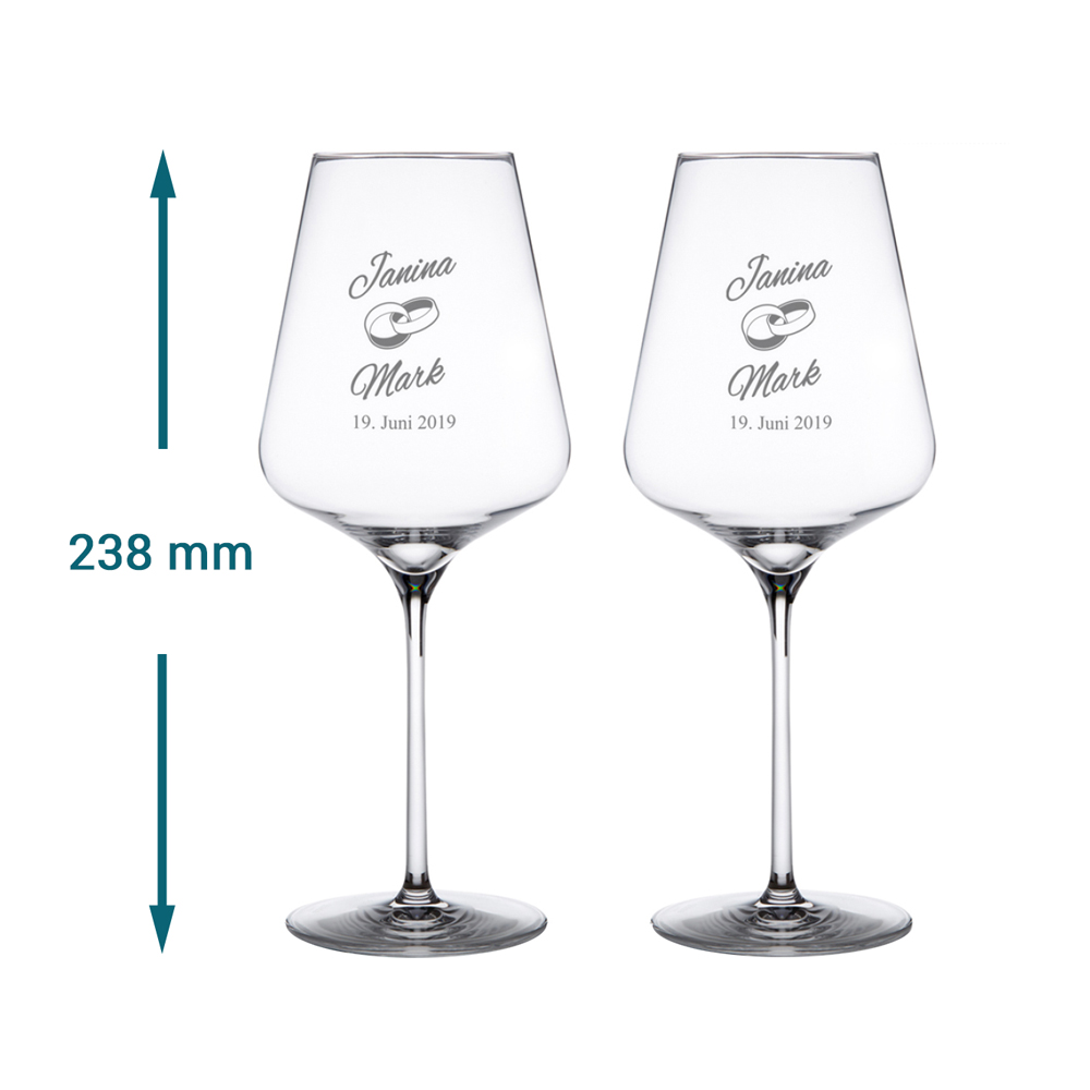 Die Weingläser zur Hochzeit sind eine ideale Mischung aus einem persönlichen, edlen und besonderen Geschenk! Das in deutscher Manufaktur hergestellte Weingläser Set hebt sich primär durch die streng funktionale und akzentuierte Form aus dem Mittelmaß hervor. Die ausgeprägte, tief angesetzte Taille zeichnet den Charakter der Gläser aus und das funktionale Design hat eine praktische Ursache: Die bauchige Kelchform vergrößert nämlich die Kontaktfläche des Weins mit dem Sauerstoff, so dass der Wein sein Aroma besser entfalten kann. Zudem besitzt dieses Gläser Set, wie auch die anderen Monsterzeug Gläser, einen ausgehöhlten Stiel, der das Gesamtgewicht reduziert und somit eine bequemere Handhabung der Gläser ermöglicht. Die qualitativ hochwertig verabeiteten Gläser sind perfekt für den guten Tropfen Vino und bekommen durch die individuelle Gravur einen persönlichen Schliff. Die Ring- oder Herzmotive passen toll zum Hochzeitstag, so dass sich das Paar beim Weintrinken immer an diesen schönen Tag erinnert.
