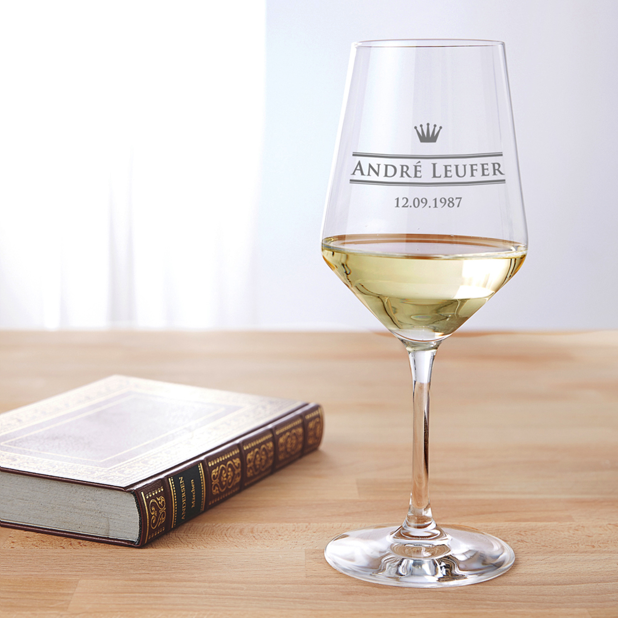 Und da wären wir auch schon bei unserer tollen Geschenkidee: Kröne die oder den Beschenkten zum König/in mit unserem hochwertigen Weißweinglas. Ein klassisches und zugleich zeitloses Design zeichnet den Charakter des Weinglases aus. Zudem werden bei diesem Glas Kelch und Stiel so zusammengeschweißt, dass keine erkennbaren Nähte zu sehen sind und es optisch wie aus einem Guss wirkt. Für einen persönlichen Touch wird das Glas mit einer individuellen Gravur versehen: Ob der Name eines Familienmitglieds inklusive des Geburtsdatums des Beschenkten oder der Spitzname der besten Freundin - Deiner Fantasie sind dabei fast keine Grenzen gesetzt! Dazu gesellt sich das edle, royale Kronen-Motiv, das Du zu verschiedensten Anlässen wie Geburtstag, Weihnachten, Jahrestag und Vielem mehr verschenken kannst.