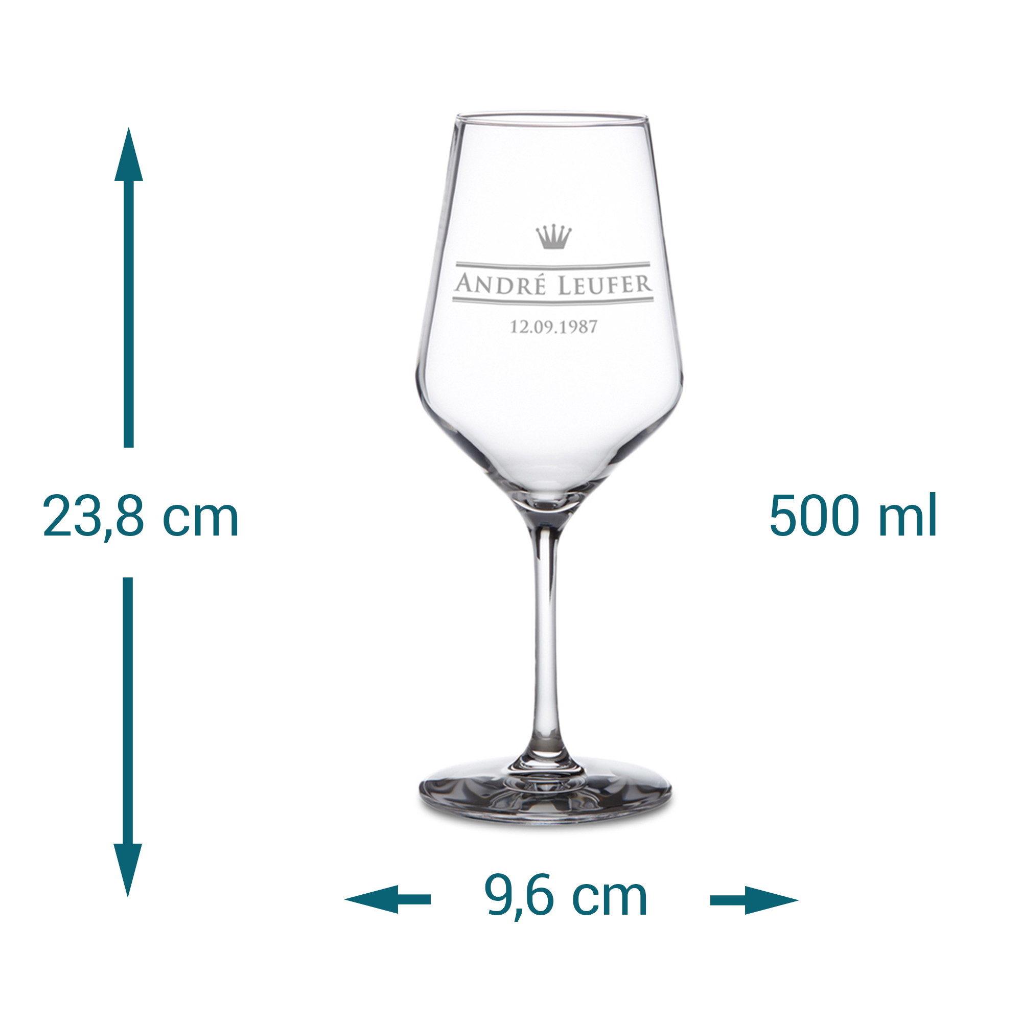 Übrigens passt in dieses edle Weißweinglas mit Gravur - Royal fast ein halbes Liter Wein rein, auch wenn es auf den ersten Blick nicht so aussieht! Graviert, wird das Glas zu einem echten Hingucker und wird bestimmt nicht im Schrank des Beschenkten verstauben!