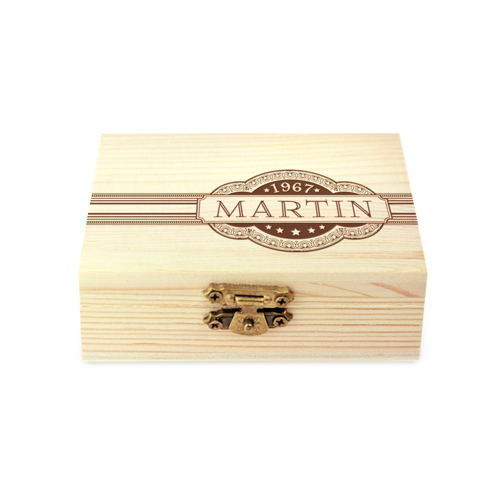 Eingebettet ist die Gravur in das Motiv einer Banderole. Banderole war damals die Bezeichnung für ein kleines Banner, welches das Herrschaftsgebiet eines Adligen oder die Zugehörigkeit zu diesem markierte. Die sorgfältig verarbeitete Kiste aus Echtholz wird außerdem mit einem goldenen Verschluss verriegelt, was eine sichere Verwahrung und mühelosen Transport garantiert. Die Kombination aus persönlicher Note und dem praktischen Wert für Whiskyfans macht die Whisky Steine in Holzkiste mit Gravur - Banderole zu einem einzigartigen Geschenk, egal ob zum Geburtstag, Weihnachten, Vatertag oder als nützliches Geschenk für Freunde und Verwandte.